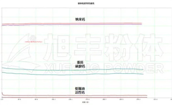測試結(jié)果表明:粘度對比,納米鈣>重質(zhì)碳酸鈣>低吸油活性鈣。