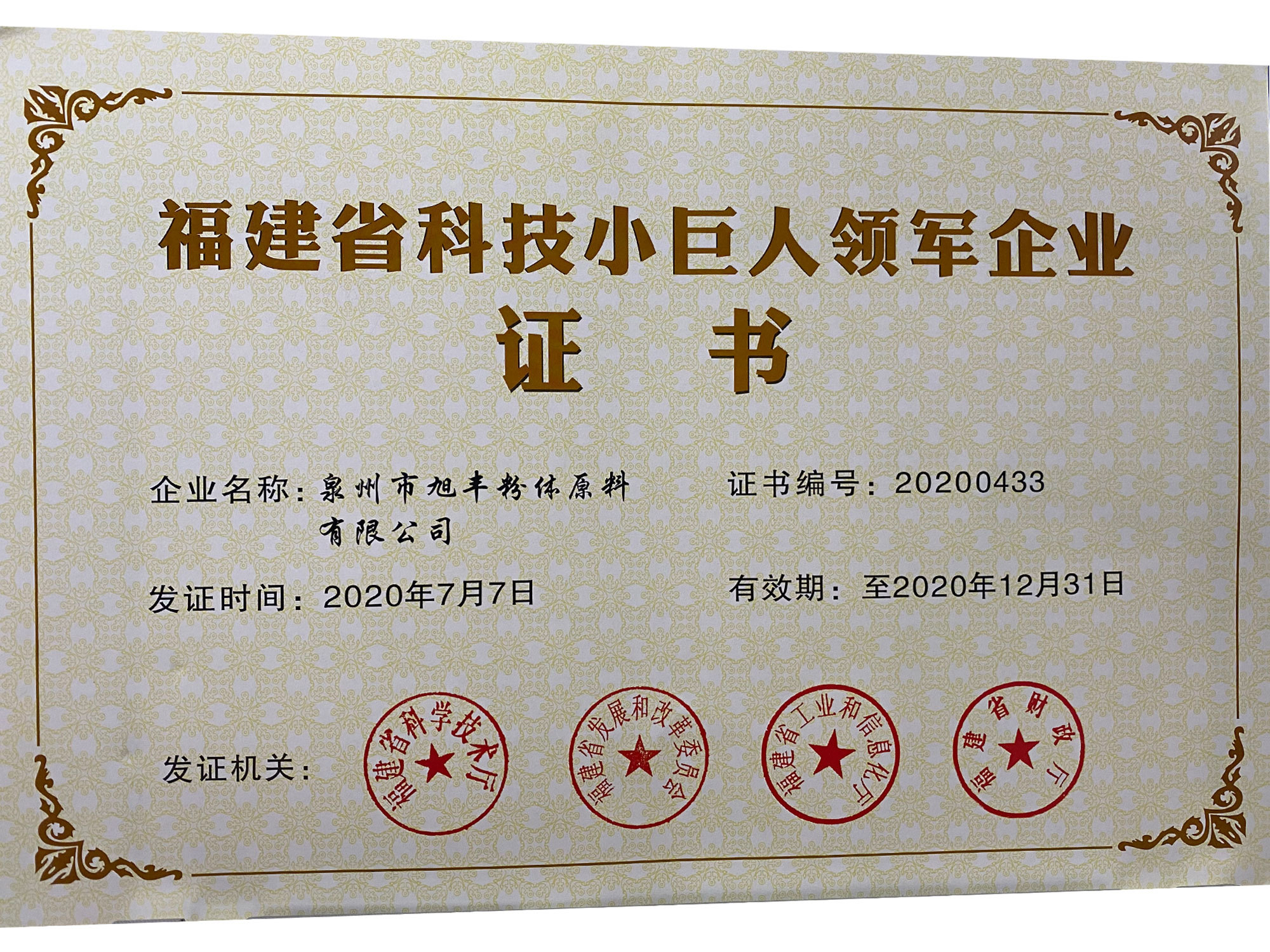 日前,福建省科學技術(shù)廳公布2020年科技小巨人領(lǐng)軍企業(yè)新增培育名單,旭豐粉體企業(yè)有幸入選,被列入“科技小巨人領(lǐng)軍企業(yè)培育發(fā)展庫”,并正式授予“福建省科技小巨人領(lǐng)軍企業(yè)”榮譽證書。